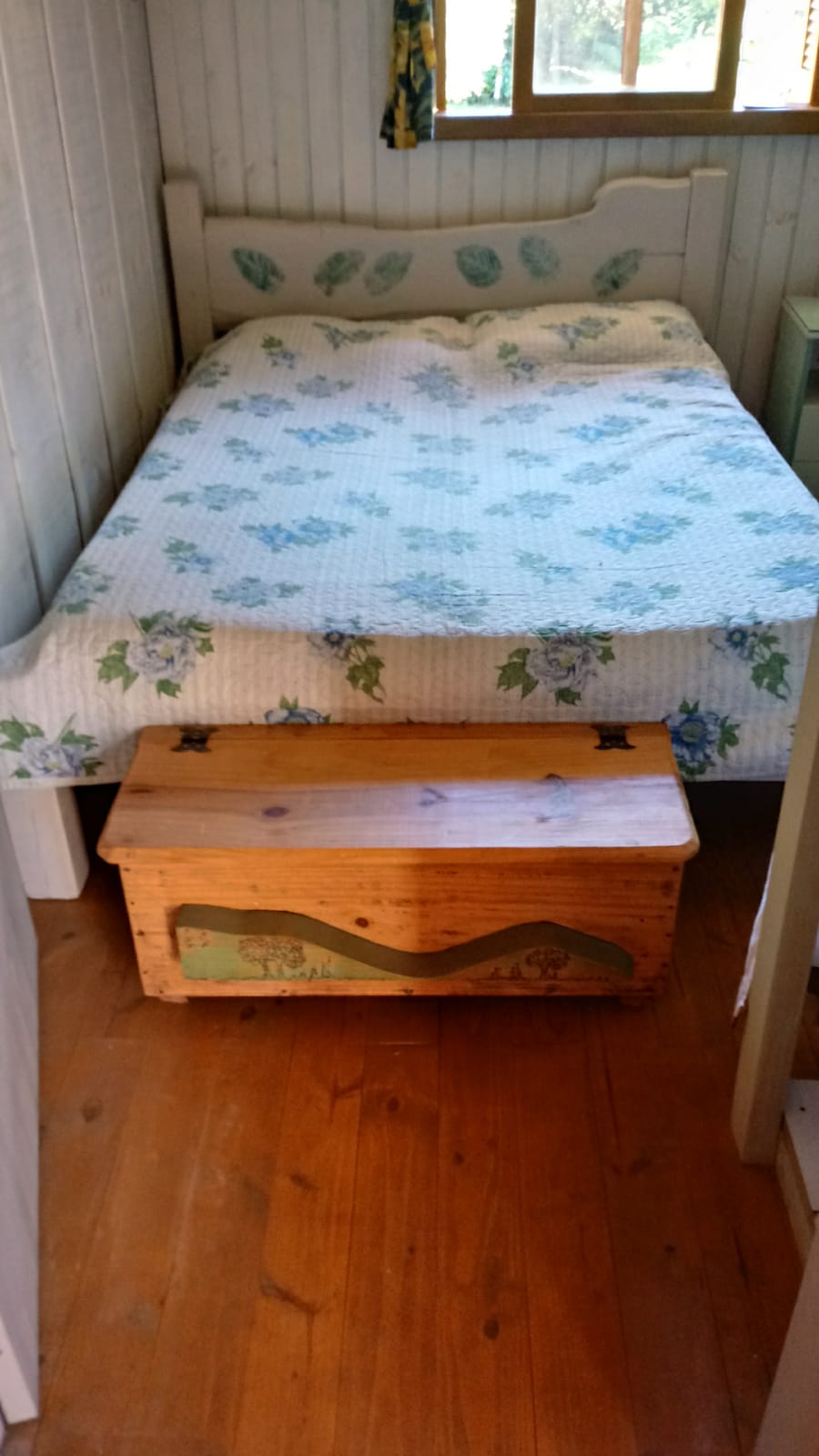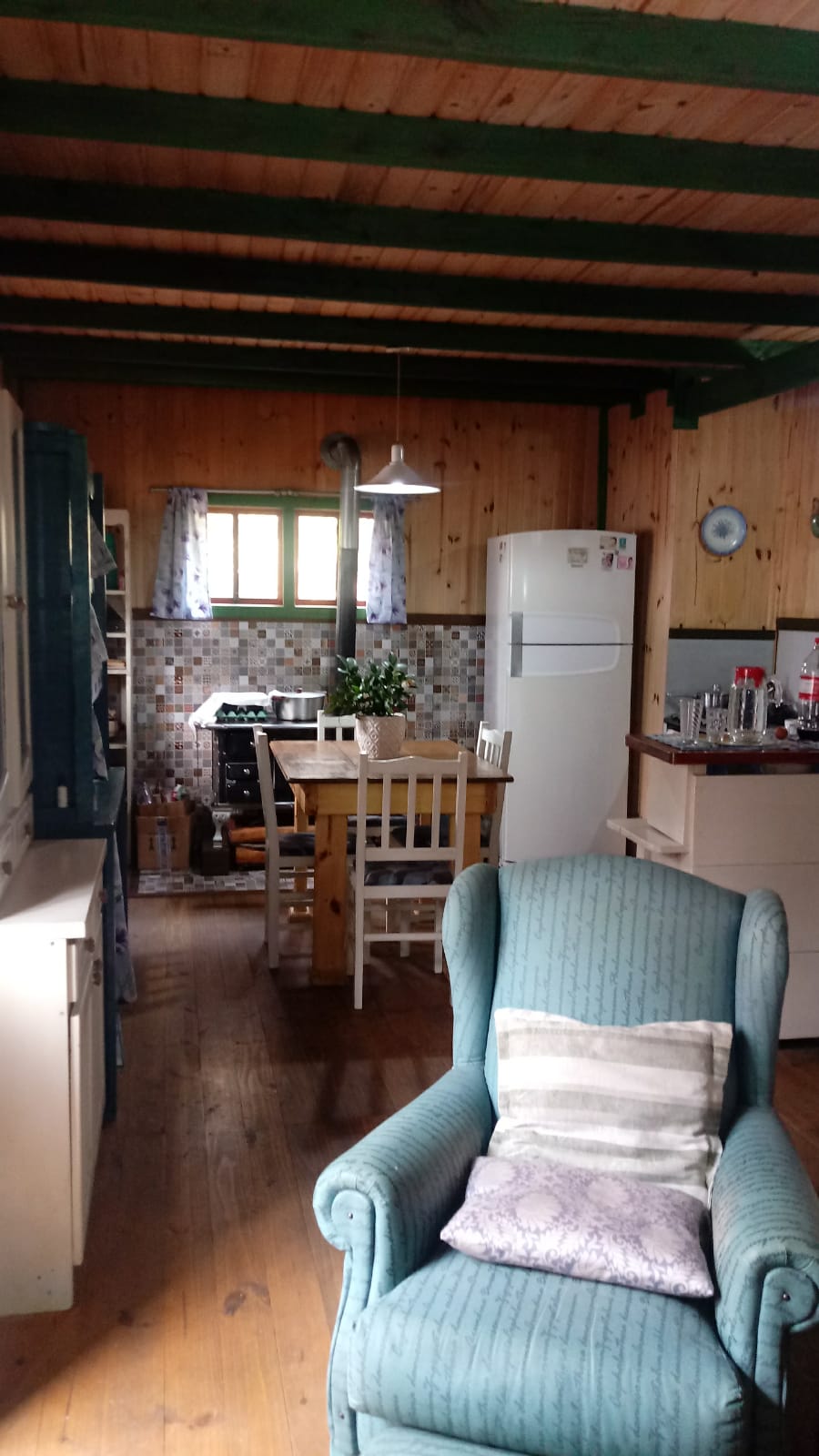 Uma casa de madeira com dois dormitórios, escritório, sala, cozinha integrada, área de serviço. Dois terrenos com área de 1.222,50m²