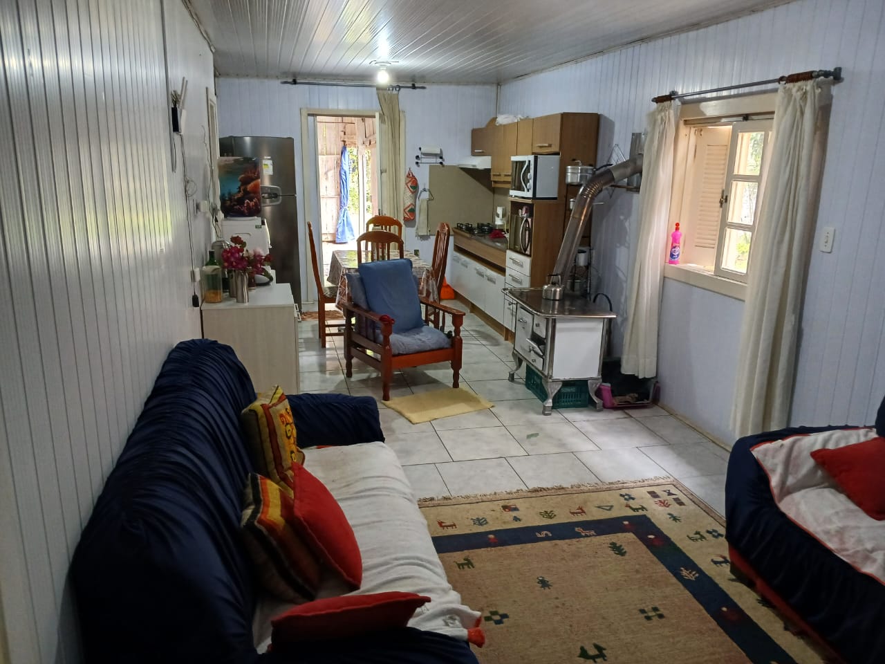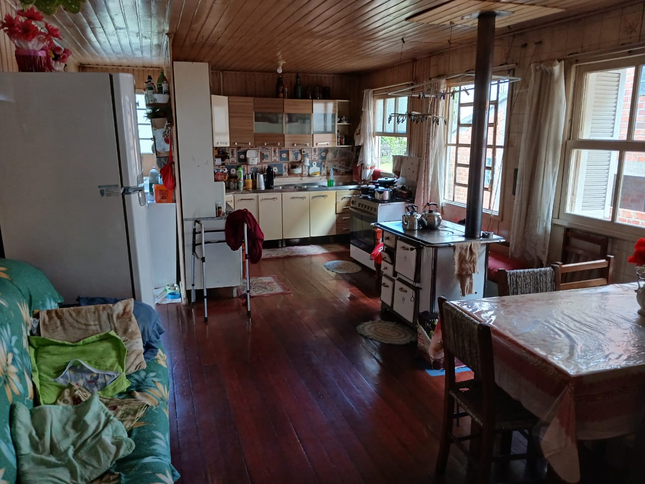 Uma casa com três dormitórios, cozinha, sala e banheiro na parte superior, e na parte inferior três dormitórios, cozinha, sala e banheiro. Terreno com 12X60m. Ótima localização.